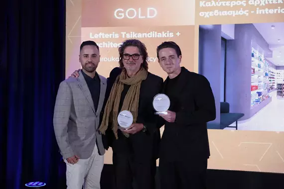The architectural practice Tsikandilakis Lefteris + Architects received three major distinctions at the Best in Pharmacy Awards 2025, a prestigious institution that celebrates quality, innovation, and creativity in the field of pharmacy design.