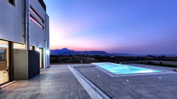 Το οικόπεδο μελέτης έχει εμβαδόν περίπου 4ων στρεμμάτων και βρίσκεται στα Καλέσσα στο Ηράκλειο. Η αρχιτεκτονική σύνθεση βασίστηκε στα ιδιαίτερα χαρακτηριστικά του οικοπέδου, στον προσανατολισμό και στο τοπικό κλίμα, αλλά και στις λειτουργικές ανάγκες της οικογένειας. Βάσει αυτών των δεδομένων σχεδιάστηκε μία διώροφη κατοικία με υπόγειο και πισίνα, εμβαδού 200 τ.μ. Οι λιτοί όγκοι, ορθολογικής σχεδίασης, συντίθενται μεταξύ τους και δημιουργούν ένα ενιαίο σύνολο, προσθέτοντας αισθητικές εναλλαγές με τα μεγέθη και τη μορφή τους. Η αυστηρότητα του κεντρικού πυρήνα της κατοικίας ισορροπεί με τους ημιυπαίθριους χώρους, οι οποίοι συμπληρώνουν το πλάσιμο των όγκων.