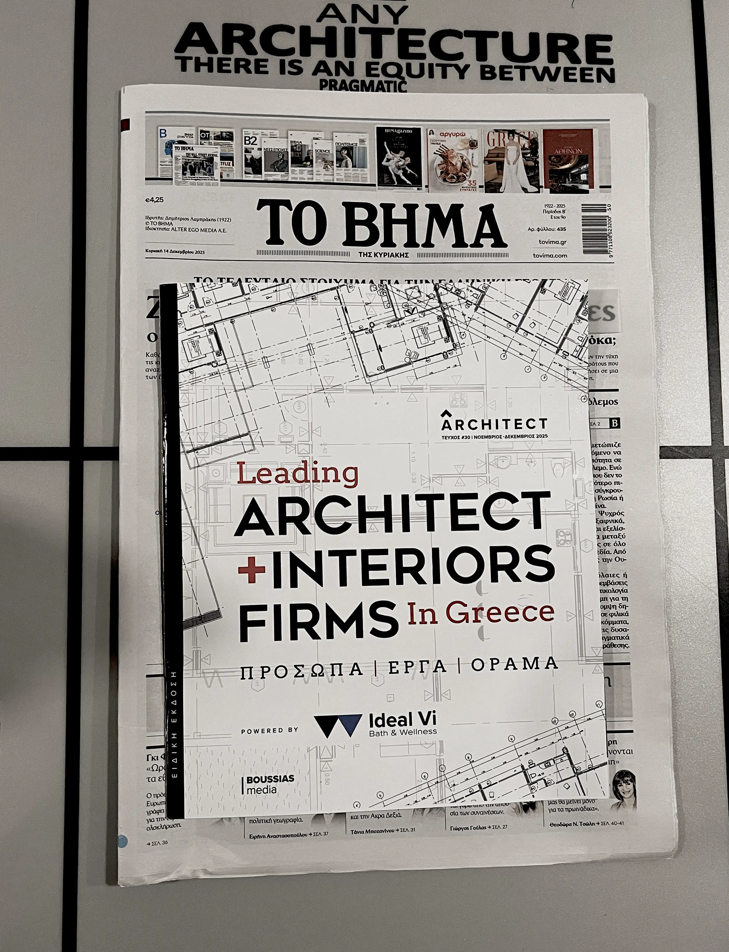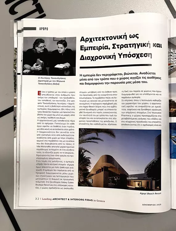 Ευχαριστούμε θερμά το "ΒΗΜΑ" και τη Boussias Media για την τιμή να συμπεριληφθούμε σε αυτήν την ξεχωριστή έκδοση, που αναδεικνύει το μέλλον της αρχιτεκτονικής και του design στην Ελλάδα.